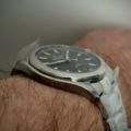 The dial features a clear and legible design with large indices and luminous hands that make it easy to read the time in various lighting conditions. Additionally, it includes a date window located at the 3 o’clock position.