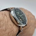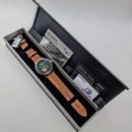 Depending on specific configurations, it may come with either a leather strap or a stainless steel bracelet, allowing for versatility in style and comfort.