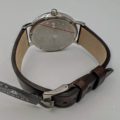 The watch features a clean and simple white dial with hour markers and baton hands. The small seconds subdial at 6 o’clock provides functionality without cluttering the dial.