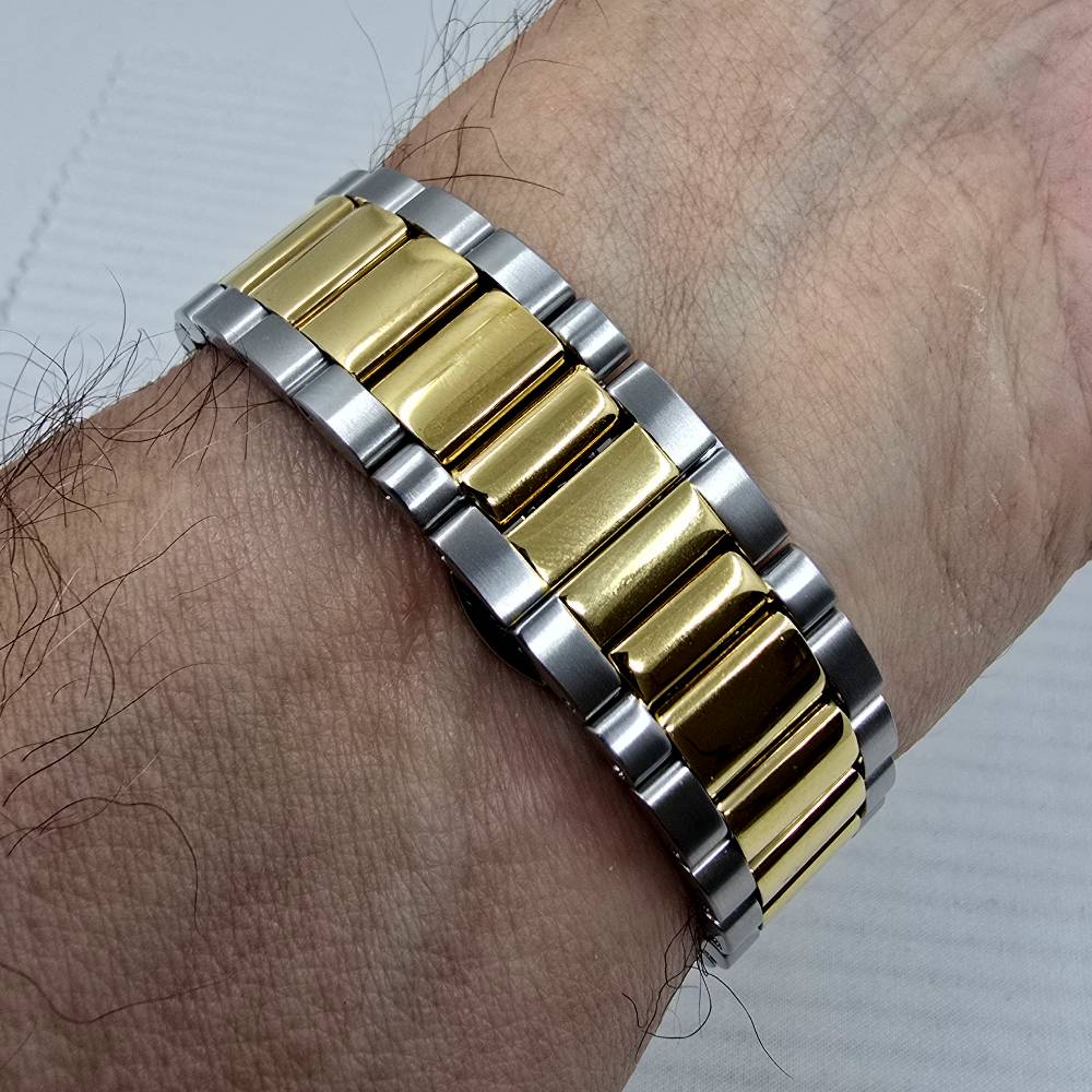 Gold plated steel., With logo.