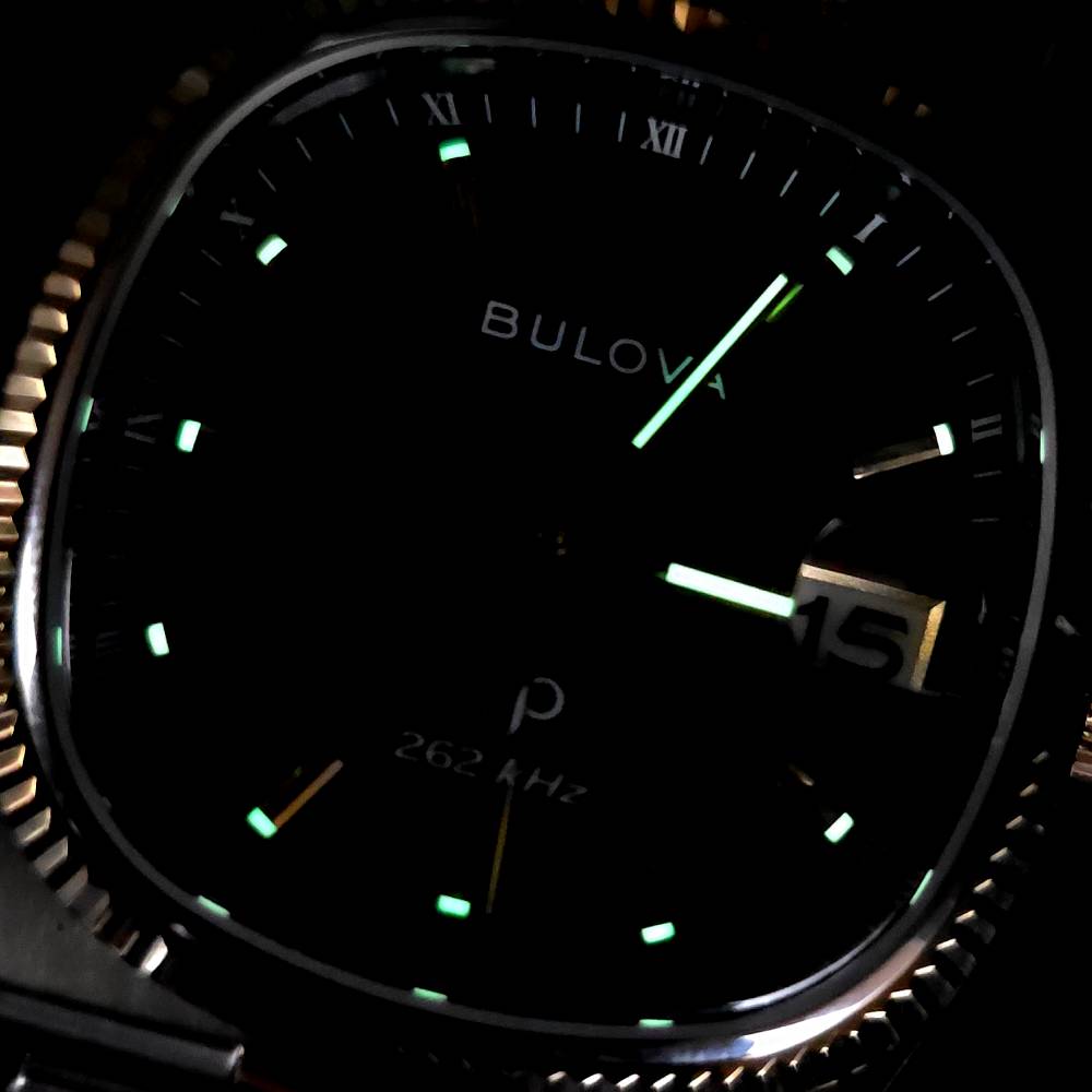 Calendar at 3, Central seconds hand, Luminescent hands., Luminescent indexes
