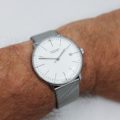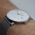 - Minimalist Design: The dial features a clean and simple design with well-defined hour markers and Arabic numerals that facilitate easy time reading. The minimalist aesthetic is characteristic of Max Bill’s design philosophy, focusing on functionality without sacrificing style.