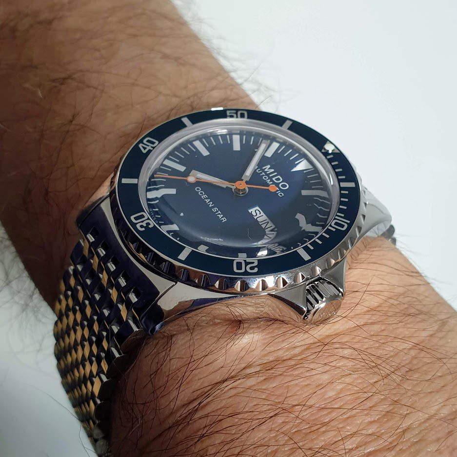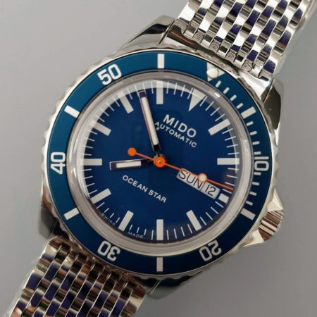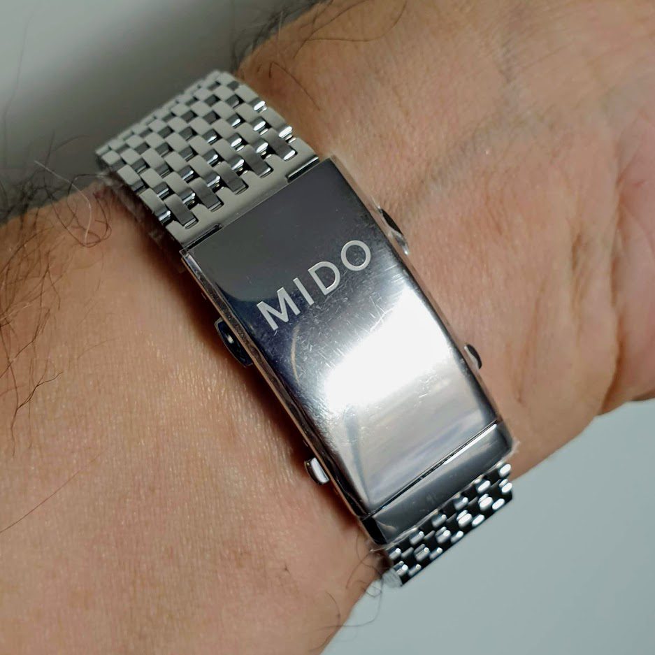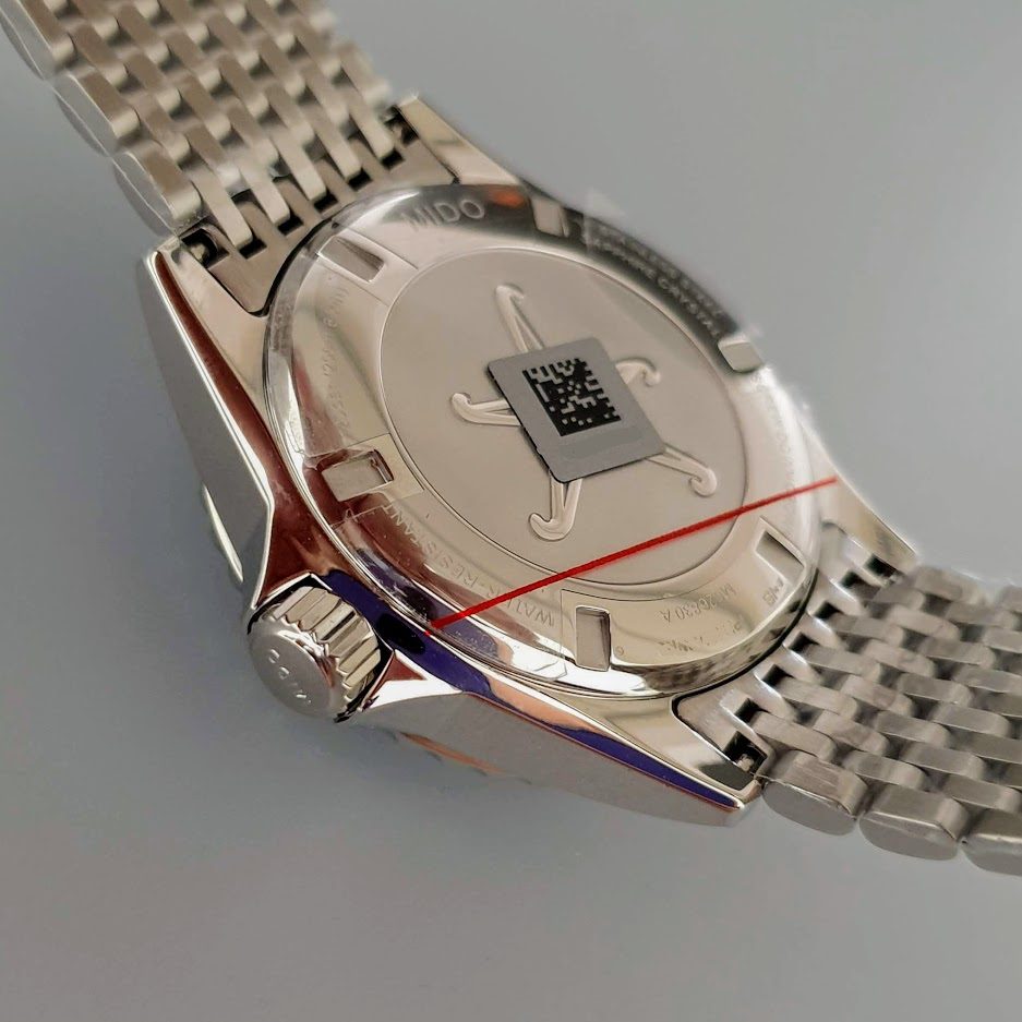 - Readable Dial: The dial presents a clear and legible design with large indices and luminous hands for easy reading in low-light conditions or underwater situations. The design may include vintage details that evoke classic Mido models.
