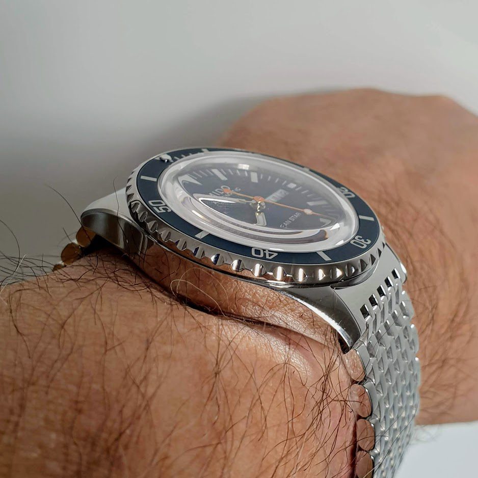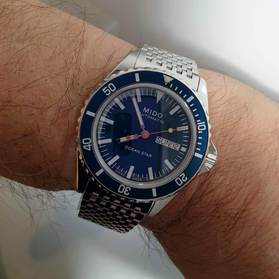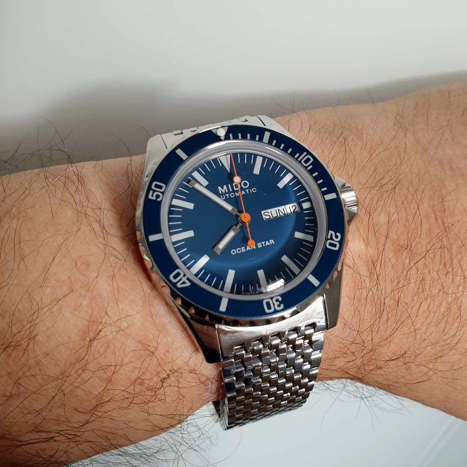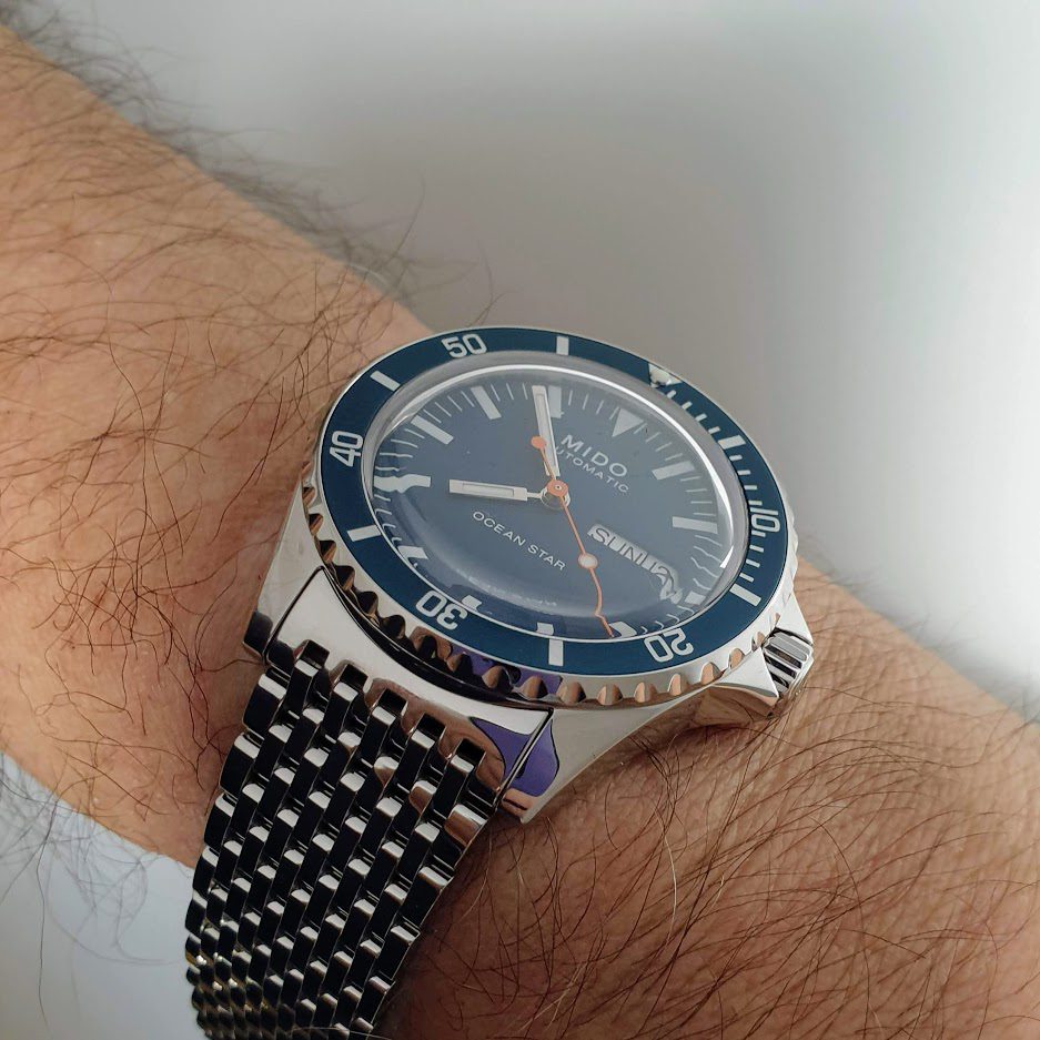 - Readable Dial: The dial presents a clear and legible design with large indices and luminous hands for easy reading in low-light conditions or underwater situations. The design may include vintage details that evoke classic Mido models.