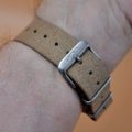 Comes with a brown leather strap that perfectly complements the dial and provides comfort when worn.