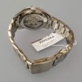 The case is made of stainless steel, providing durability and corrosion resistance. Its sharp design gives it a contemporary look.