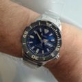 The dial features large indices and luminous hands, making it easy to read in low-light conditions. It also has a unidirectional rotating bezel to measure immersion time.