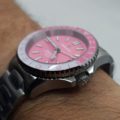 The pink dial of the Nereide GMT is one of its most striking features. This soft and elegant color adds a modern and distinctive touch to the watch, making it stand out among other models.