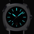 Calendario a las 6., Índices luminiscentes., Manecillas luminiscentes., Segundero central.