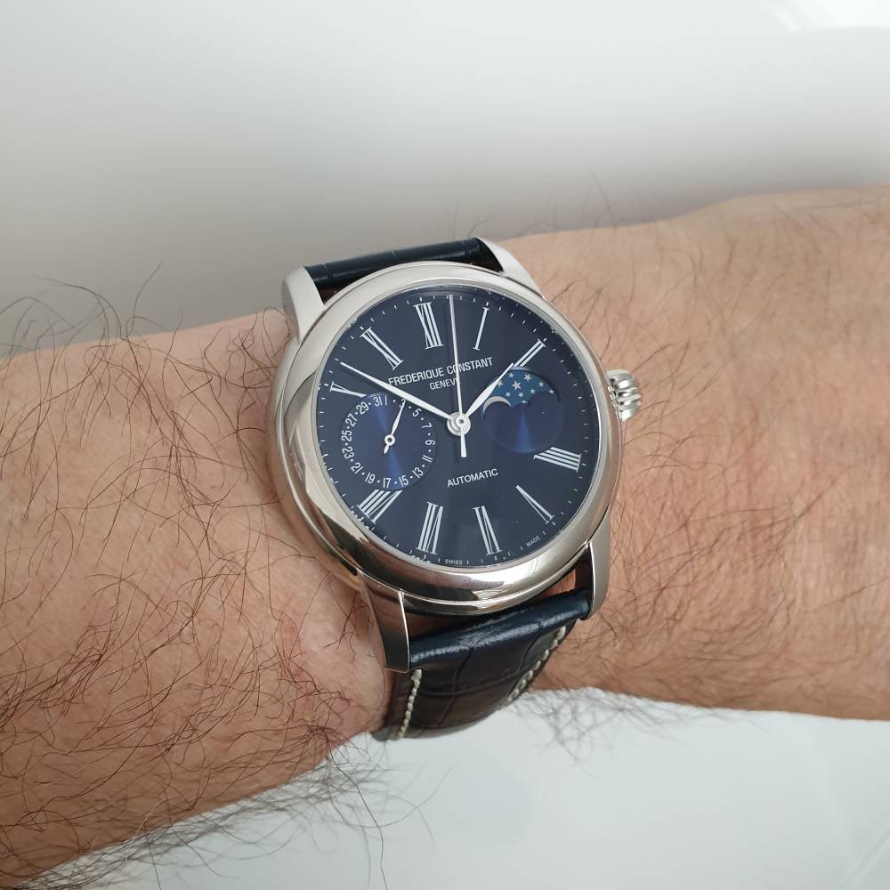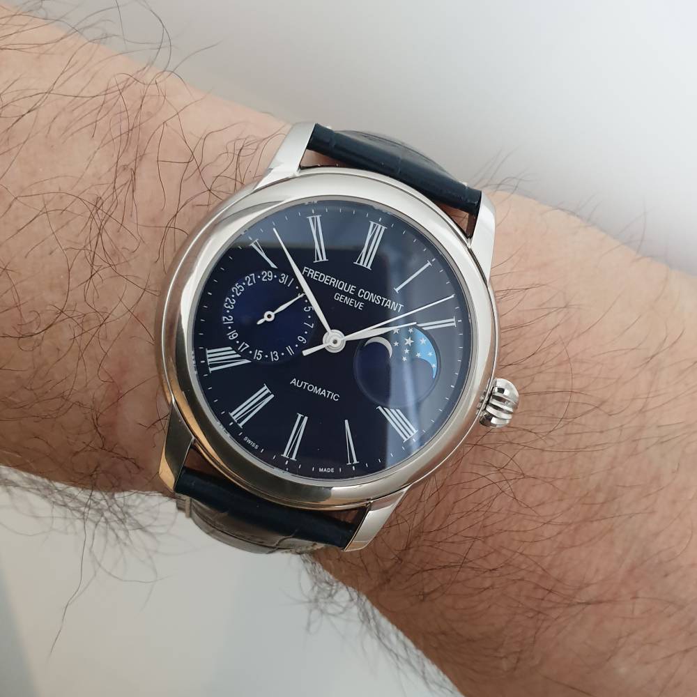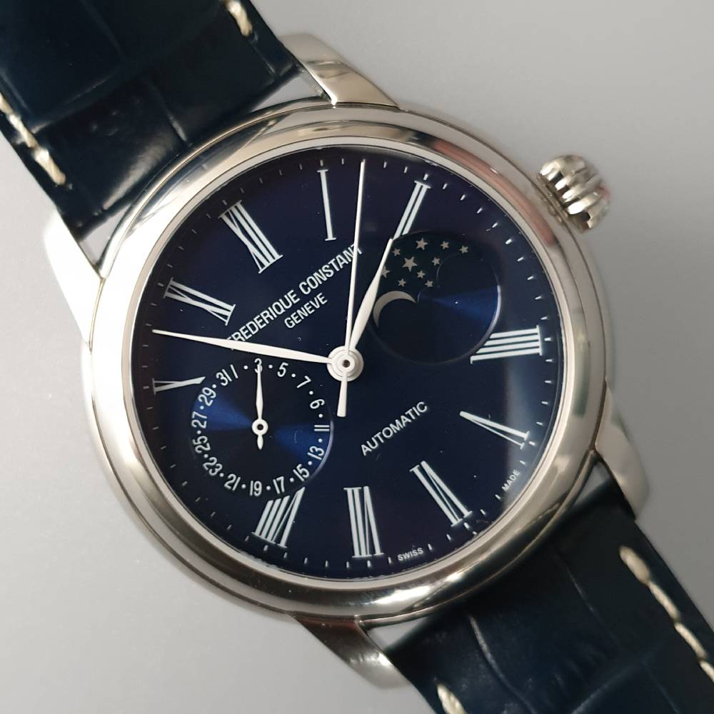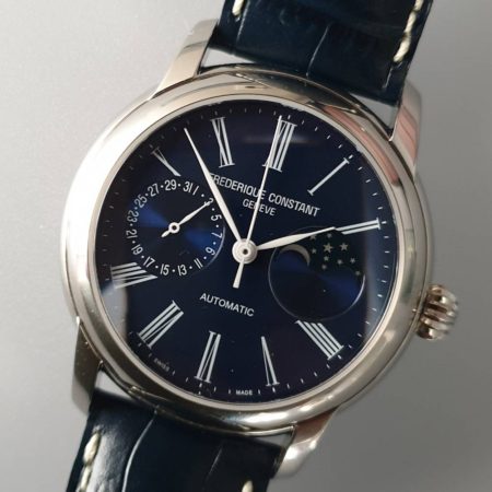 SKU: 5818 Categorías: Sin uso, Fase lunar, Azul, Piel, Fecha, Relojes, Outlet, Hombre, Automático, Clásico Marca: Frederique Constant