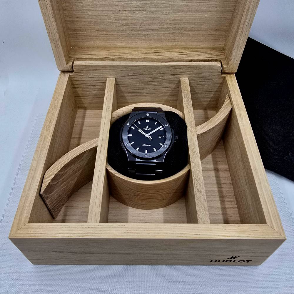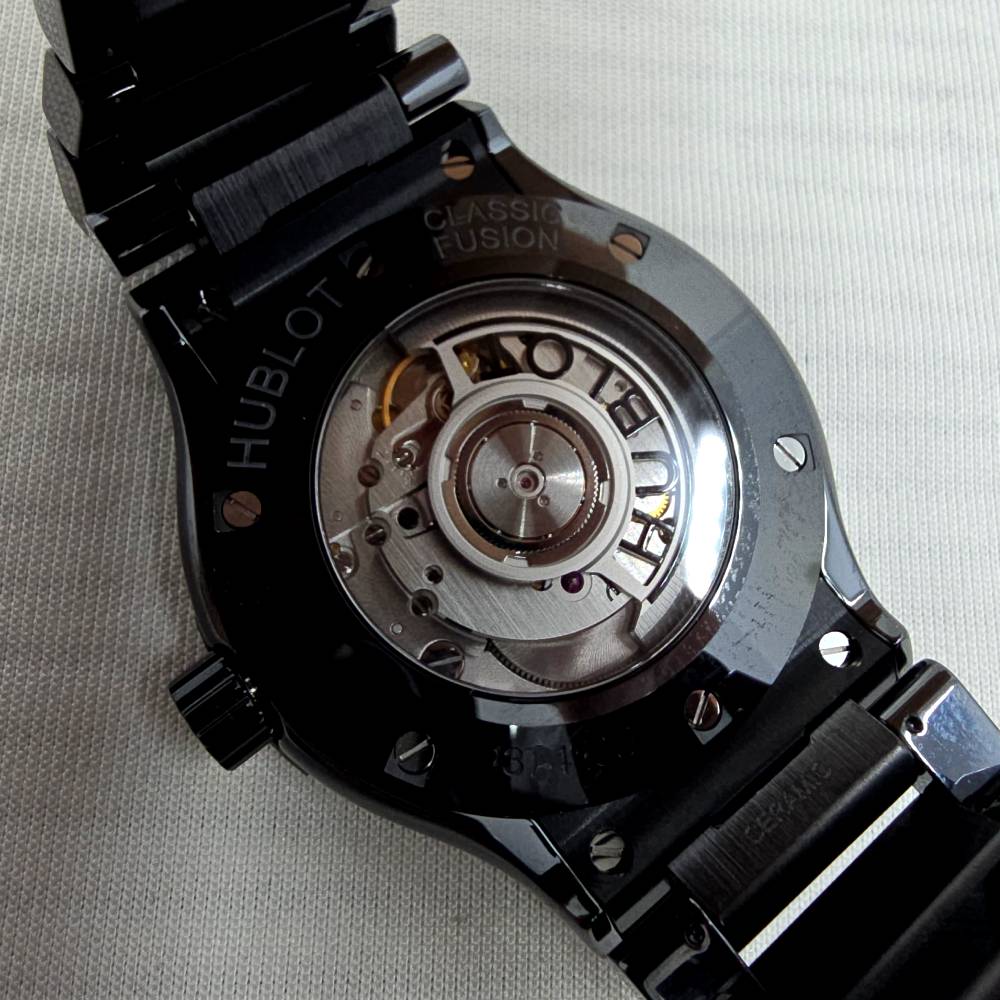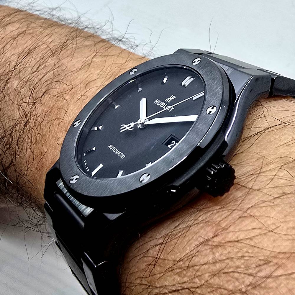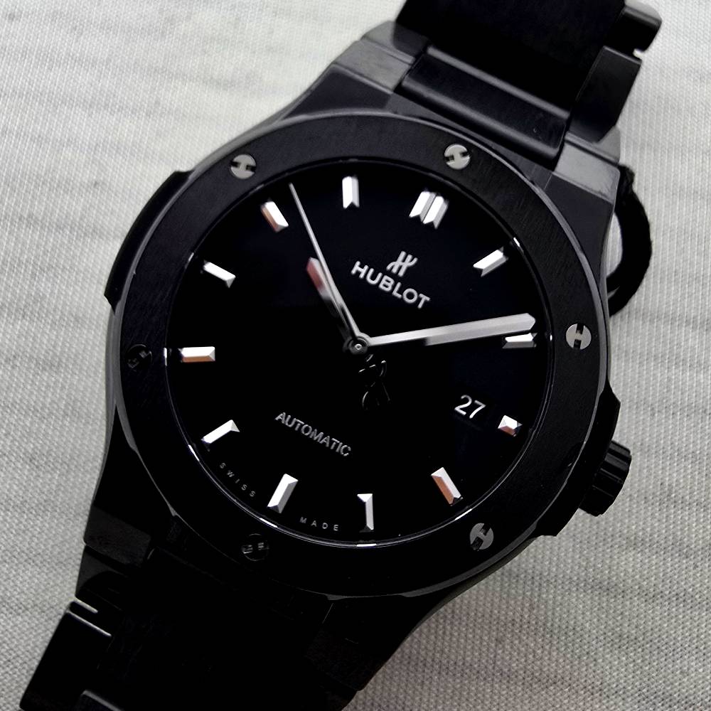 Hublot Classic Fusion Black Magic 548.CM.1170.CM, with automatic movement HUB1110, ceramic case and strap, black dial, 42 mm diameter, ceramic bracelet, 5 ATM water resistance, with original box, papers and warranty.