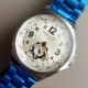 Viene con una correa de acero inoxidable o cuero, dependiendo del modelo específico, que complementa el diseño elegante del reloj.